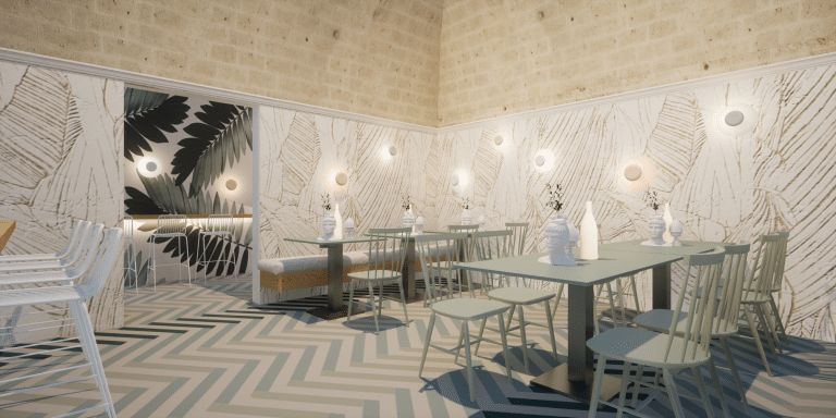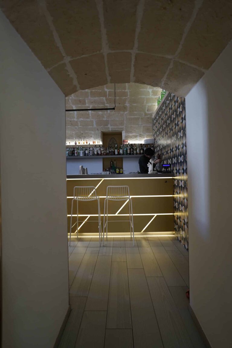Un progetto sartoriale di design per la ristorazione che è partito da una storia : Puglia che ritorna a casa e Sicilia che arriva in Puglia. Detto in due parole : Giovanni e Maria. Ho studiato un concept che mettesse in relazione “simbiotica “ la mediterraneità molto colorata della Sicilia con il candore della Puglia il tutto incastonato in un palazzo datato metà del 500 e la cui evoluzione si è conclusa a metà dell’800 con la costruzione della torre dell’orologio adiacente .