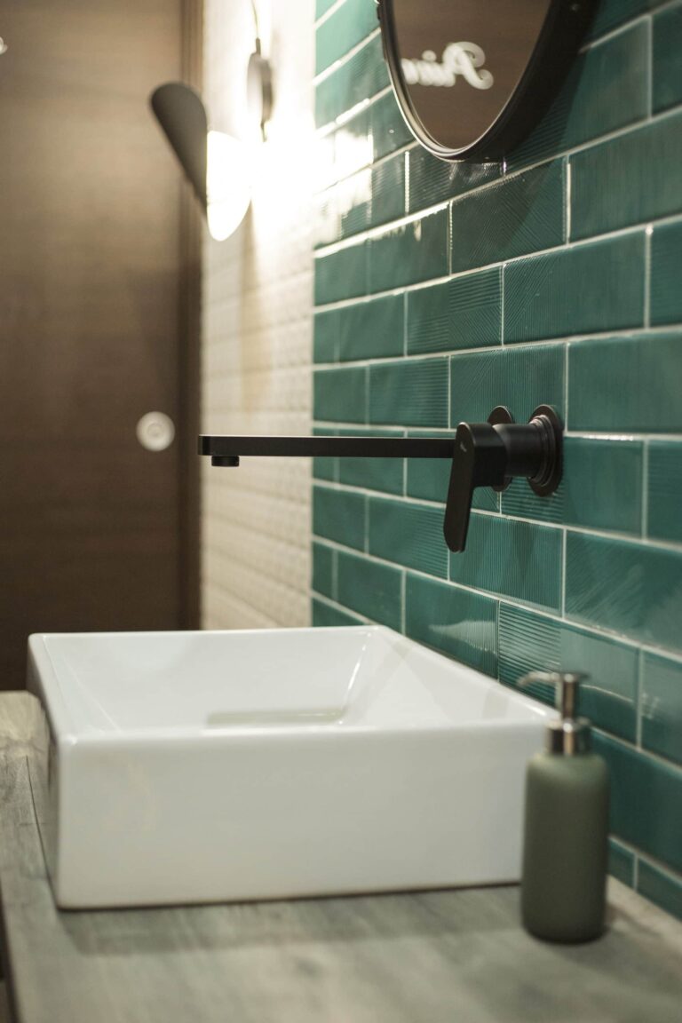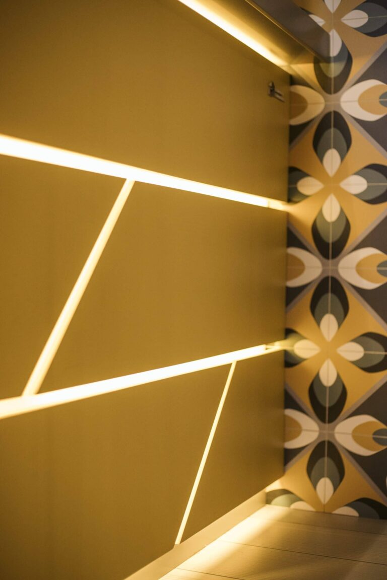 I materiali : il progetto nasce dall’unione di ben 9 materiali. Tra carte da parati, pavimenti multicolor, corian, gres a parete, legno laccato e ferro, tutto è stato accordato al mood “mediterraneo eclettico”