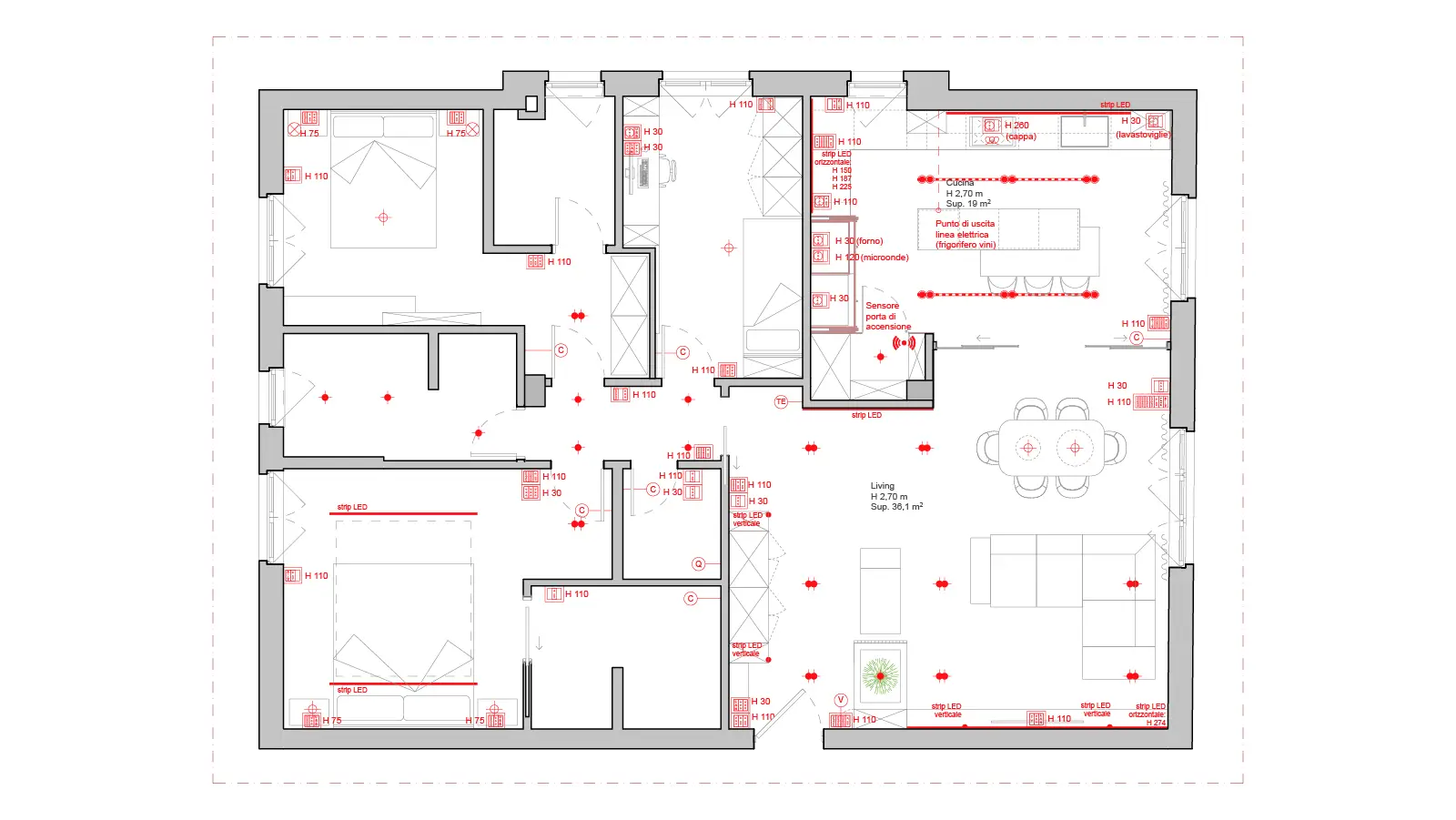 Non è necessario ma molti clienti hanno già un’impresa di fiducia: in questo caso preparo tutta la progettazione tecnica necessaria per iniziare i lavori (tavole impianti, illuminazione, planimetrie, arredi su misura).