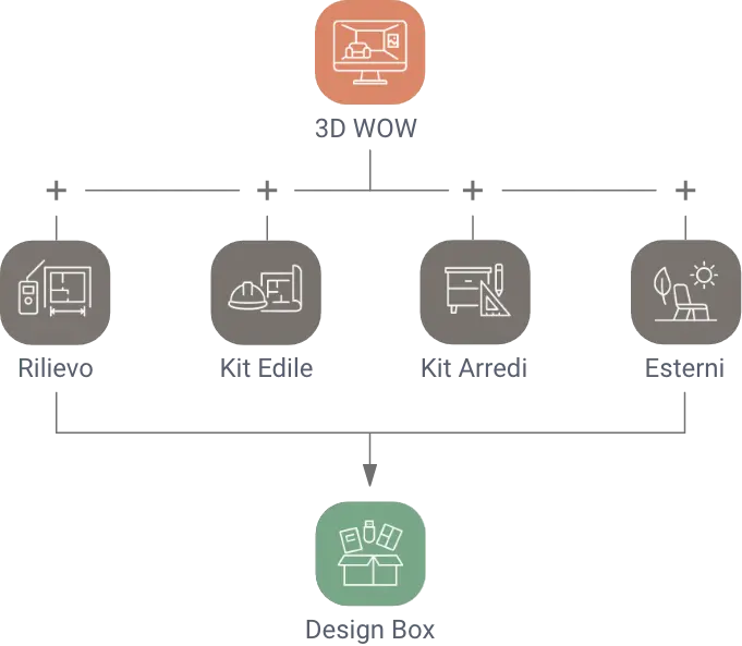 Puoi scegliere di partire solo con il 3D WOW o partire già con un progetto più completo in base a quello che ti serve realmente. Durante la call conoscitiva ti aiuteremo ad individuare la soluzione più giusta per il tuo progetto.